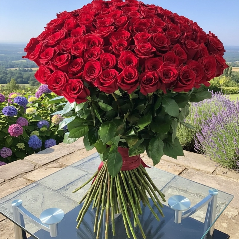 The Glee Rose is a beautiful expression of love and joy. If the illustrated flowers are unavailable, we will substitute them with blooms of equal or higher value in a similar style and color. As with all natural products, slight color variations may occur, making each arrangement uniquely beautiful.