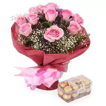 Be the first to review “Touch of Romance Pink Rose Bouquet and Ferrero Rocher”